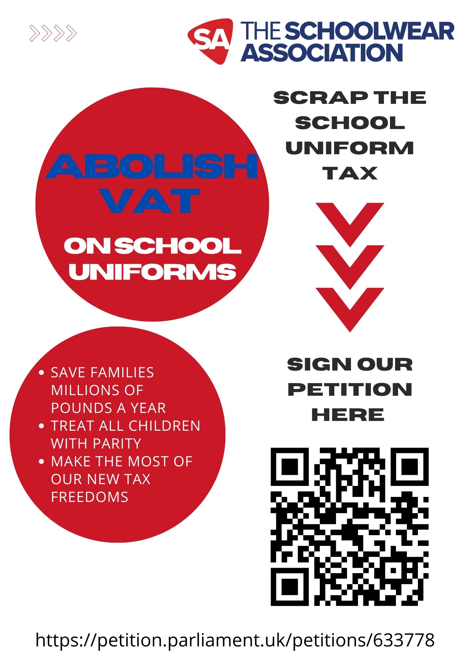 Please print out the our VAT campaign poster and encourage parents and guardians to support our campaign to scrap the VAT on school uniform. You can sign the petition here: https://petition.parliament.uk/petitions/633778